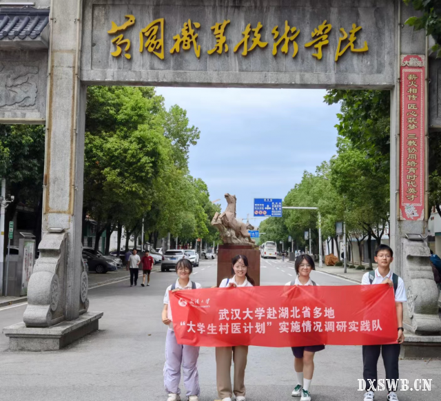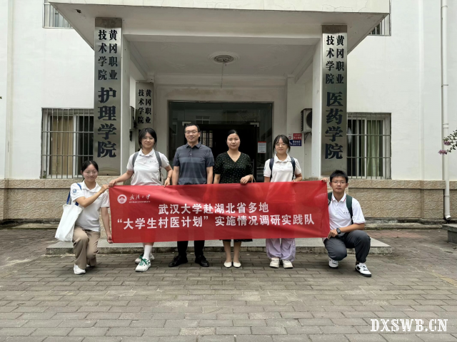 乡村医生是推进健康中国建设的重要力量,也是村民的健康“守门人”。为调查湖北省基层医疗服务下沉情况,总结和学习青年参与乡村医疗振兴的优秀案例与成功经验,2024年7月13日,武汉大学赴湖北省多地“大学生村医计划”实施情况调研实践队的4名队员前往湖北省黄冈市黄冈职业技术学院进行线下调研。