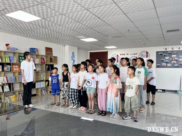 图为实践团成员王晓宇与同学们合唱歌曲。 郭亚楠 摄