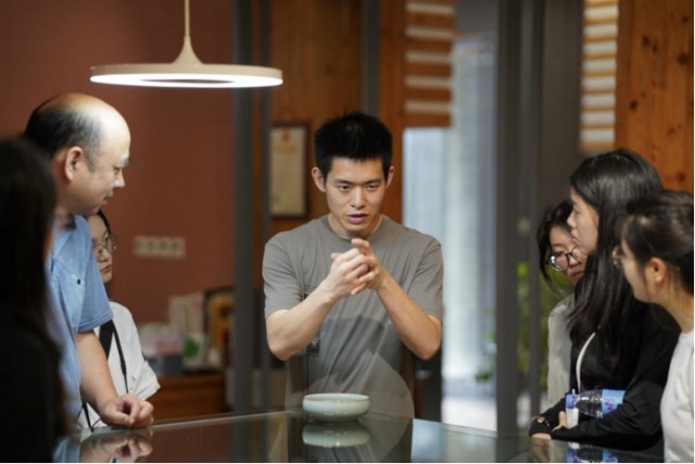 图 3 青瓷大师叶晨曦讲解青瓷制作理念。谷心蕙供图。