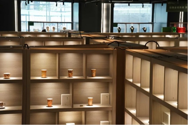 图 4 望瓯·陶溪川文创街区青瓷产品售卖橱柜。青匠小分队供稿。