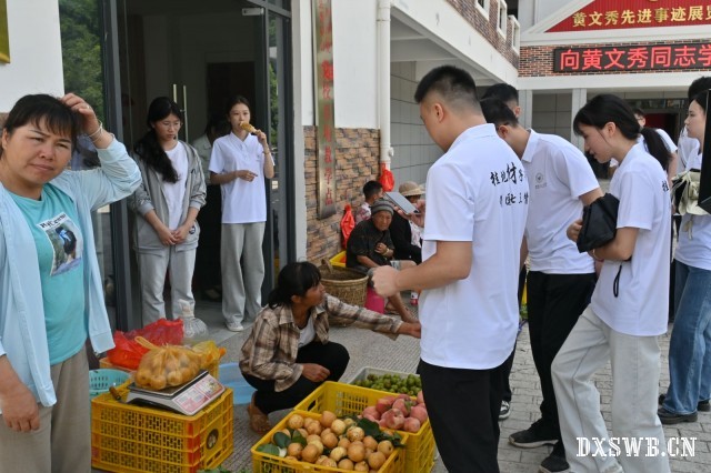 图为实践团成员与村民交流特产图。蒋妮玉 供图