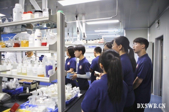 图为实践团成员在实验室里面体验化妆品研发流程 蒋妮玉供图