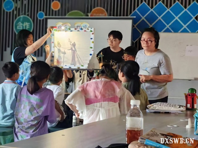 图为志愿者为孩子们讲解中国的皮影戏并让孩子们自己亲身感受皮影戏的魅力,让孩子们发挥想象表演一出精彩的皮影戏。刘家琪 供图