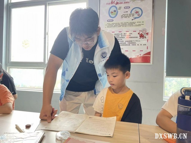 图为志愿者给孩子们进行作业辅导解答疑惑。魏檬 供图
