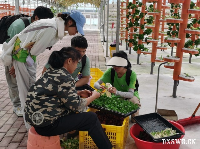 图为实践队成员在下那曹村大棚蔬菜基地帮助工作人员移栽蔬菜苗。陈曦徐 供图