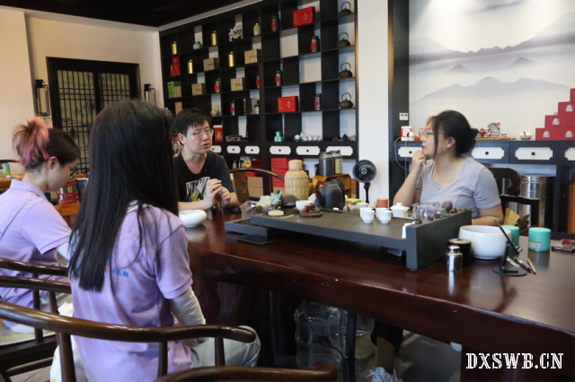 在参观过程中,实践队员们首先被温晓燕邀请品尝了莲花山茶的独特魅力。轻轻啜饮一口,清香扑鼻、滋味醇厚、回甘持久,令人陶醉其中。温晓燕表示,莲花山茶以其独特的品质和口感赢得了消费者的广泛认可,成为市场上的热销产品。在品茶环节,通过指导老师和温晓燕的沟通得知,由于当地土质为酸性不适合种植水果,从当地政府通过从2000年开始规划茶产业开始,开发出适合茶叶种植的梯田以及修路这项前期工程就耗时长达三年多,不过前期的付出也有了实质性的回报。莲花山茶产业已经成为当地乡村振兴的重要支柱产业。通过发展茶产业,当地农民的收入得到了显著提高,生活水平也得到了极大的改善。同时,茶产业的发展还带动了相关产业的兴起和发展,为当地经济注入了新的活力,使得更多的年轻人愿意尝试返乡创业。