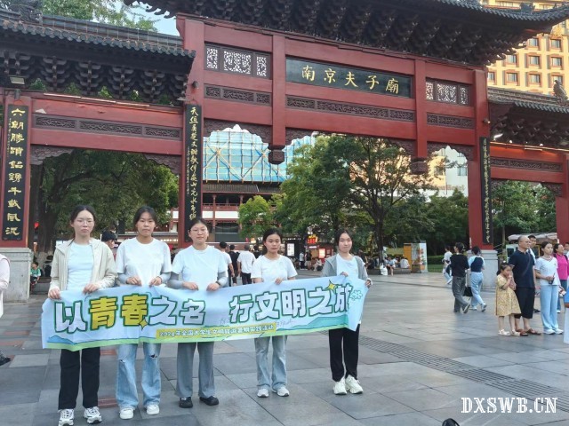 由许倩蕾、邓心怡、陈思萌、何妍、凌宇瑶组成的队伍前往南京博物馆和南京夫子庙进行文明旅游宣传活动。成员们在这里进行文明浏览宣传、开展文明参观、文明浏览的引导和相关的宣传;同时在南京夫子庙开展捡拾垃圾、垃圾分类的宣传等活动,向公众们传递了环保理念。成员们各司其职,收获满满。