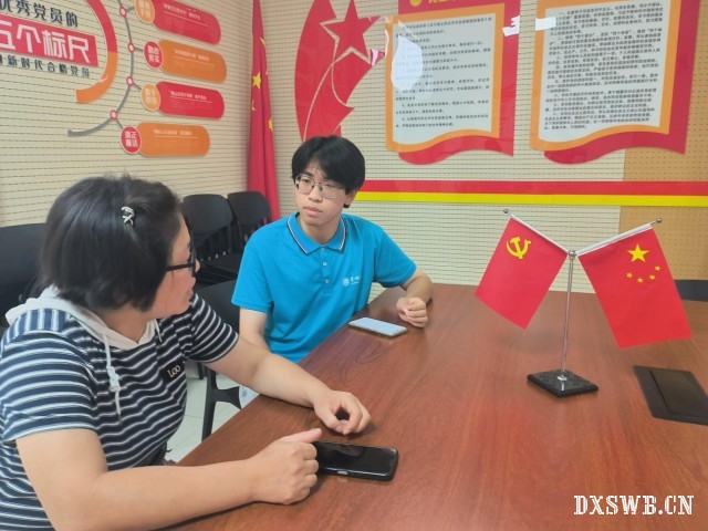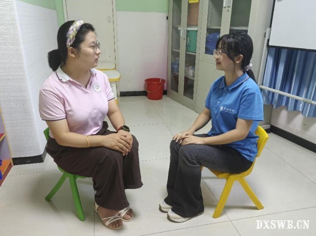 图为实践团成员访谈特教机构的宣传老师。 大学生网报通讯员 朱航 摄
