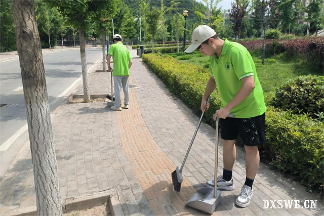 图为实践队员为保持盲道清洁打扫卫生。通讯员 刘朗 供图