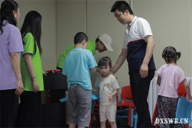 图为实践队员引导视障儿童放好凳椅。通讯员 刘朗 供图
