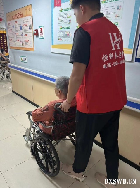 图为志愿者推着老人们回到病房 梁钰俊供图