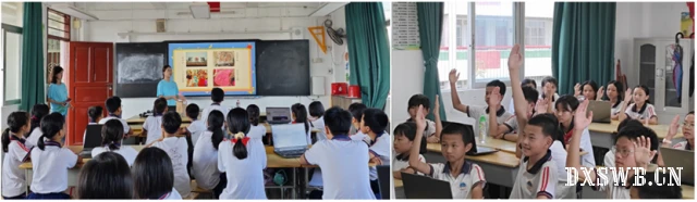 “谁知道西岐村什么最有名?”技术演示完成后,小老师话锋一转,开启了问题抢答环节,孩子们脱口而出“英歌舞”。课堂内的气氛随着画面的变化而起伏。“大寮嵌瓷”“上盐界画”“东盐红桃粿”……,教室里回荡起一阵阵响亮的声音。小老师像变戏法一样,巧妙地将成田的非遗项目引入孩子们的视野。