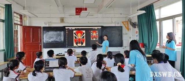 2024年7月18日,广东农工商职业技术学院计算机学院“计”忆青春“乡”约盛夏实践队赴汕头市潮南区成田镇西岐学校开展了一场以“AI点亮成田非遗”为主题的爱心支教活动,将现代科技人工智能技术(AI)与成田当地非遗文化相融合,借助AI等新媒体技术为乡村小学生上了一堂别开生面的非遗文化课,AI使乡村非遗课堂“活”起来。