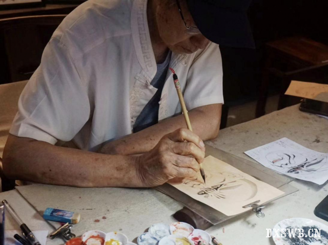 图为脸谱画传承人之一程少岩老师在画脸谱。 罗磊 供图