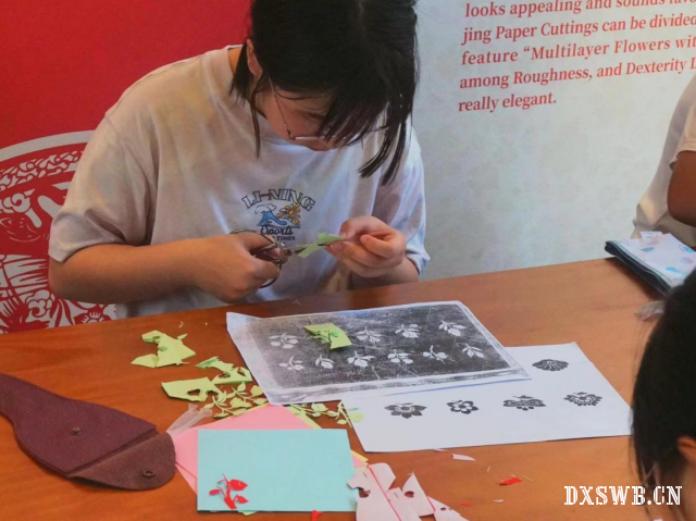 图为实践团成员在南京民俗博物馆中体验剪纸艺术。荐清木 供图