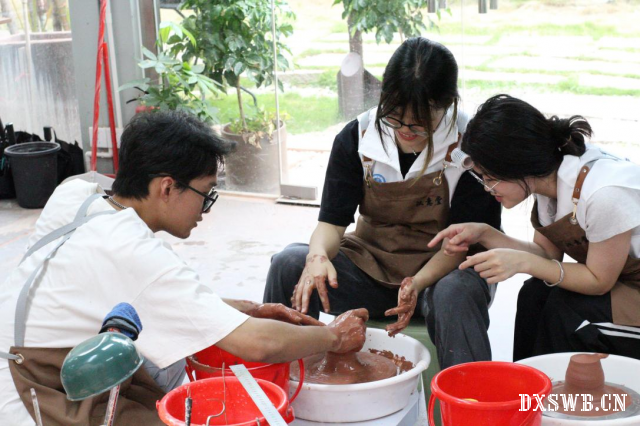 在研学过程中,广东财经大学智游文创实践团队成员们在周老师的悉心指导下,亲手体验了岗山窑的制作流程,从拉坯、修坯到上釉、烧制,每一步都凝聚着匠人的心血与智慧。同时,团队还引入了数字化技术、新媒体营销等新质生产力元素,利用小红书、抖音等平台进行宣传推广,让岗山窑这项传统技艺以全新的面貌呈现在大众面前。