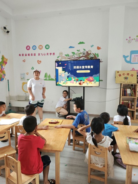 图为实践队成员进行防溺水安全教育宣讲,帮助孩子们预防溺水情况的发生。冯芸芸 供图