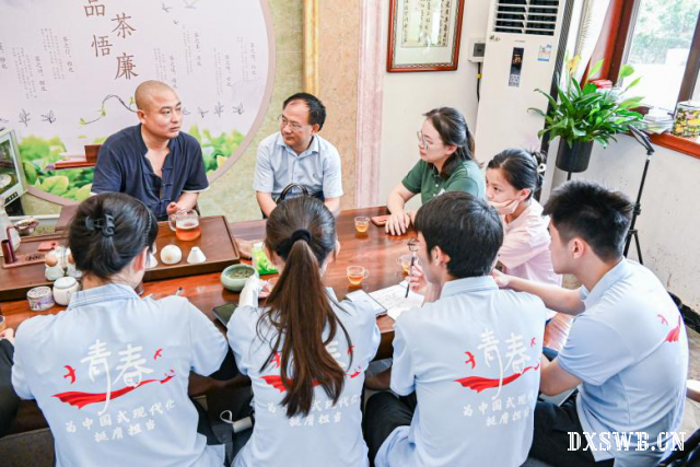 古韵绕茶香,清泉润人心。志愿者们来到奇山茶叶有限公司,公司创始人肖奇山热情招待,邀请志愿者们同坐品茗。“我们推出茶产业融合项目,将洞口传统美食凉粉与茶叶相结合,做出老少皆宜的红茶凉粉。”肖奇山侃侃而谈,倾情讲述公司茶产业融合发展项目,志愿者们受益匪浅。
