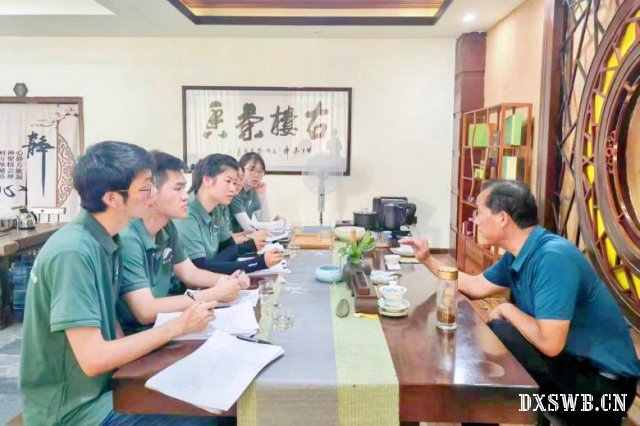 随后,调研团队前往洞口县云雾茶叶有限公司进行考察。股东肖尊甫向志愿者们介绍茶叶生长习性、茶叶品种相关知识以及公司运行、营销、宣传推广等方面的基本情况。“我们通过抖音等近几年兴起的短视频平台宣传特色旅游项目,同时通过直播带货出售大量茶叶产品。”访谈过程中,志愿者们体会到企业发展与时俱进,顺时而为的重要性。