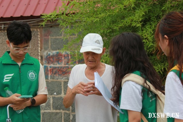 图为小队采访村内86岁高龄爷爷。张淑婷 摄