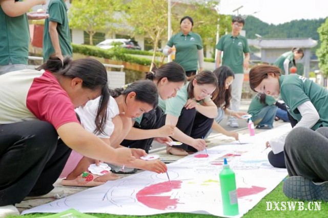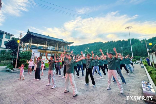 “万人共绘”十米画卷初展开,志愿者们手握各色画笔手绘五星红旗、长城……五彩画卷圆满诠释“清澈的爱只为中国”的青春誓言。霞云高挂,全体师生前往古楼乡服务中心开展饭后广场舞活动。湖南科技大学师生借用流行歌曲《走天涯》、《向快乐出发》融入当地风俗,成功吸引居民驻足观看、争相模仿,现场氛围热烈。