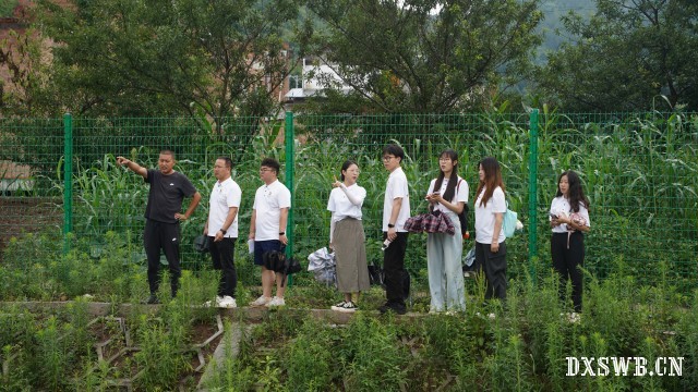 图为长梁村、永风村村支书陪同团队参观粮食基地 周芳宇供图