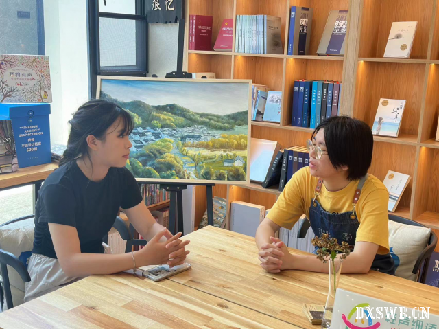 图为实践团成员采访书店工作人员,了解非遗文化在新时代的创新发展方式
