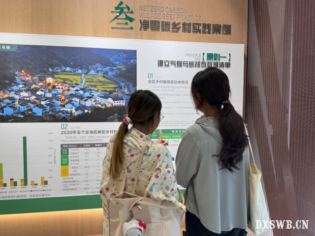 图为实践团成员在新建村文化礼堂参观净零碳乡村实践案例