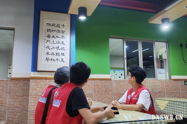 图为实践团队成员在仟贸公司食堂内欣赏佛教的偈语品味有慈悲心,少殺生,近距离感受企业文化。 通讯员 李硕涵 供图