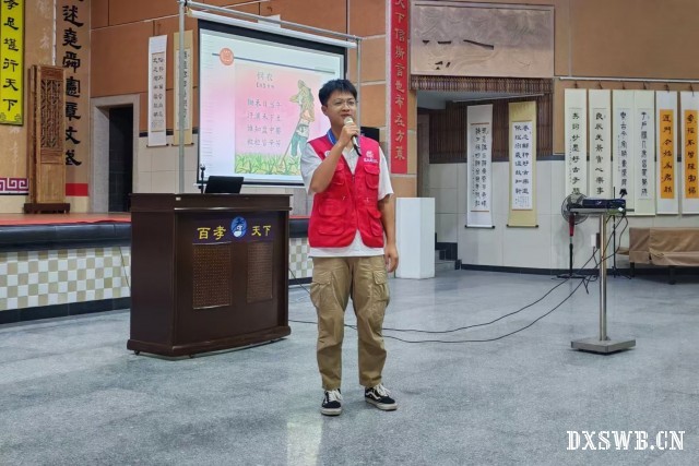图为实践团队成员参观完仟贸公司后与同学们分享自己对忠孝的理解。 通讯员 李硕涵 供图