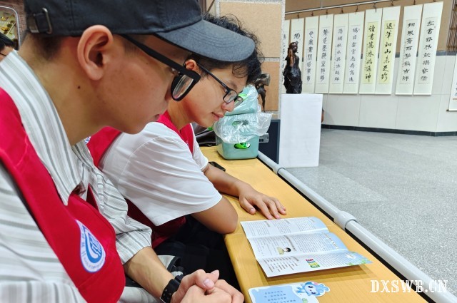 图为实践团队成员对环保知识宣传册内容的了解,通过图文介绍学习更多环保小知识。 通讯员 李达强 供图