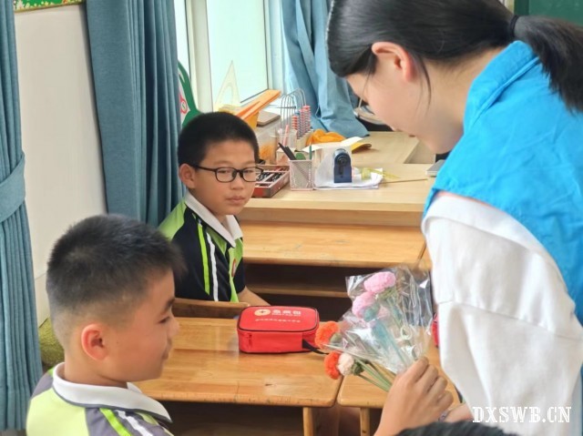 图为宣讲团成员为积极回答问题的小朋友送小礼物。孙雨婷 供图