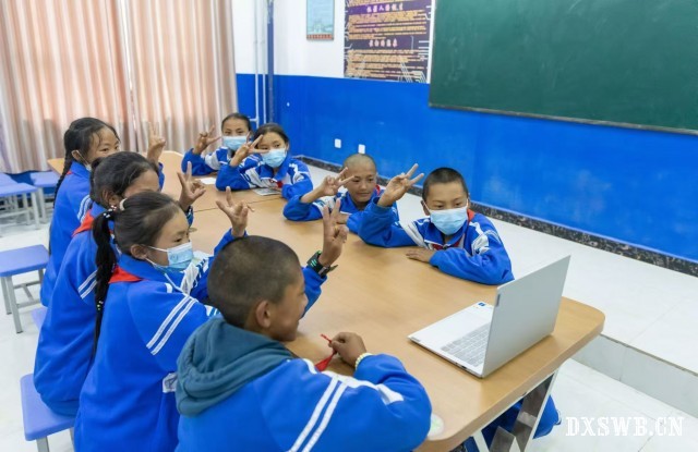 图为藏区孩子们与团队成员进行线上互动(图源浙江海洋大学)