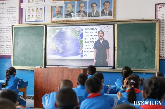 图为藏区孩子在观看团队制作的海洋科普视频(图源浙江海洋大学)