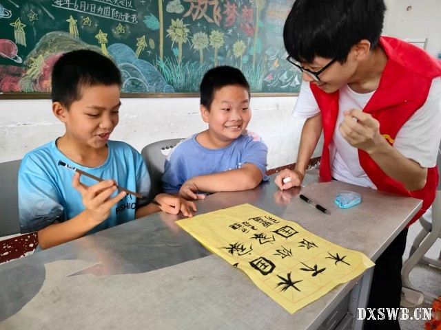 书法,作为中华民族传统文化的重要组成部分,是一门古老而典雅的艺术。它以汉字为载体,通过墨与纸的交融,展现出了线条的美、结构的美和意境的美。"翰墨飘香"四个字,形象地描绘了书法创作时的情景,那淡淡的墨香,仿佛是文化气息的凝结,让人沉醉。。为了让同学们了解书法的魅力,湖北汽车工业学院科技学院青锋·星源志愿服务队的志愿者们于2024年7月13日在湖北省黄冈市红安县上新集镇董必武红军小学开展书法的课程。书法艺术依然散发着它独特的魅力。它不仅仅是一种艺术形式,更是一种生活态度,一种对美的追求和对传统文化的尊重。让同学们在"翰墨飘香"的氛围中,感受"笔走龙蛇之间"的韵味,让书法艺术继续在时间的长河中流淌,照亮同学们的心灵。