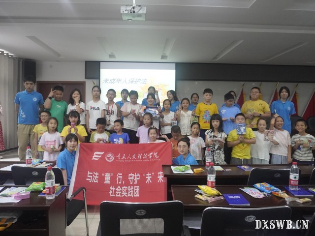 “青少年是祖国的未来和民族的希望。”2024年7月7日至7月11日,为积极响应国家号召,切实增强未成年人的法治意识和自我保护意识,重庆人文科技学院政治与法律学院“与法‘童’行,守护‘未’来”实践团前往了重庆人文科技学校以及北碚社区,开展暑期“三下乡”社会实践活动,为当地的未成年人进行了一系列旨在普及法律知识、守护未成年人健康成长的活动。