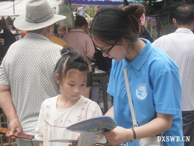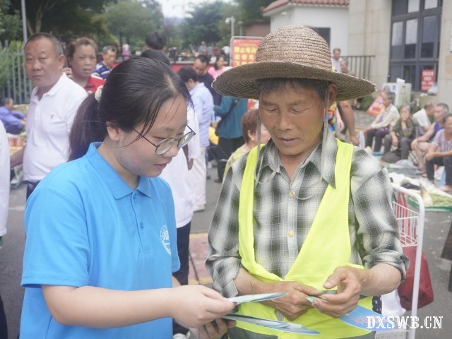 图为实践团成员为当地居民发放传单。 吴思怡 供图