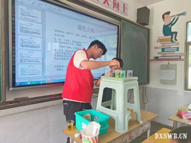 图为星之梦队长在带领学生做实验 星之梦志愿服务队