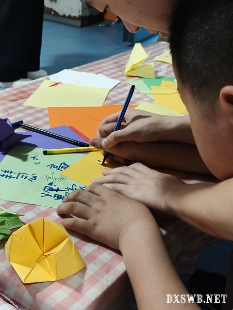 图为志愿者们与孩子进行趣味折纸。 李宏宇 供图