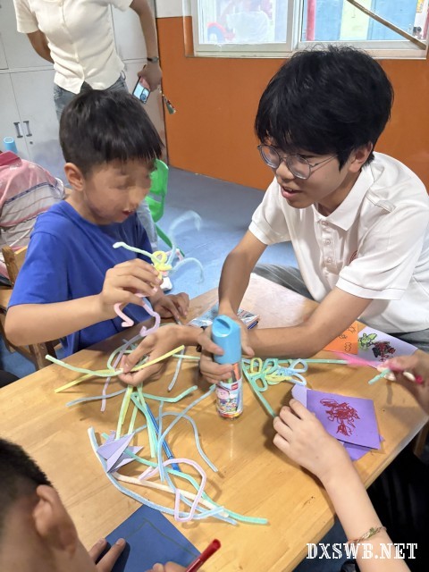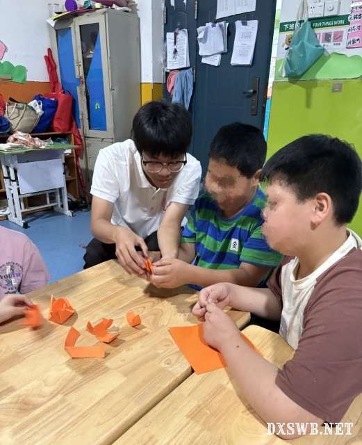 6月28日至29日,南阳理工学院土木工程学院“星语”实践服务队前往南阳弘玉特殊儿童康复中心开启了一场充满爱与温暖的暑期社会实践活动,用爱心与陪伴为孩子们的夏日增添绚丽色彩。活动聚焦智力残疾儿童,通过扭扭棒手工创作、绘画和折纸等丰富多彩的项目,简单的手工制作化作社交“钥匙”,开启欢乐互动的乐享时光。孩子们跟着志愿者在游戏中提升沟通技能与情感交流,用他们的独特的方式表达对志愿者的爱,每一刻的陪伴,都传递着温暖与关怀。帮扶残障儿童不仅是一次简单的公益志愿活动,更是一次心灵的触动,志愿者们用实际行动呵护来自星星的孩子们,守护不完美的完美,让更多的人给予他们更多的关注与关爱。相信这份爱与温暖,会如同夏日的阳光,不断助力残障儿童追逐梦想、向阳生长。(通讯员 张子正 李宏宇)