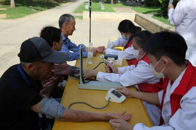 晨光初现时,团队成员们意气风发地开启了忙碌的一日征程。上午,健康爱心服务与问卷调研活动同步铺开:队员们凭借专业所长,为社区居民开展免费血压、血糖检测服务,袖带轻裹间捕捉生命节律,血糖仪探头轻触指尖便将健康数据化为切实关怀。面对居民们的各类健康咨询,队员们手持科普手册,耐心如春风化雨,逐一解答病理困惑;遇检测指标异常的居民,更着重叮嘱低盐低脂的饮食调理要点与规律作息的生活建议,话语间满是温情关切。与此同时,调研小组携问卷穿梭于社区巷道,与纳凉的居民们面对面交流,笔尖在纸页上沙沙记录,将基层健康需求凝练成带着民生温度的调研实录。