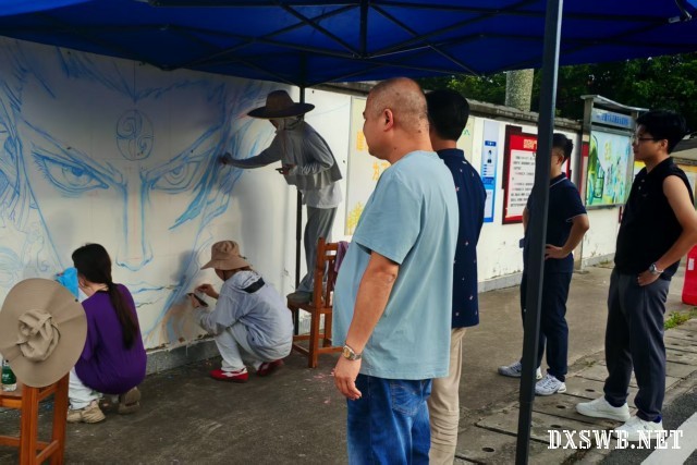 村民驻足欣赏绘画过程(田育瑄 摄)
