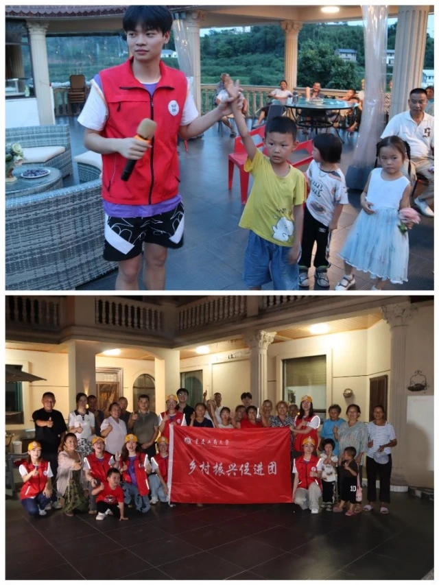 夜幕降临, 联盟村文艺晚会在村民们的热切期盼中开始。在演出过程中,促进团成员为村民们准备了贴近联盟村特色游戏与知识问答,赢得现场观众的共鸣和热烈掌声。最后,一首大合唱《我和我的祖国》以拨动心弦的歌声讴歌祖国辉煌,表达了中华儿女最真挚的告白。在促进团成员与村民动人的歌声里,此次文艺晚会画上了圆满的句号,村委工作人员以及村民们对本次表演给予了高度肯定。