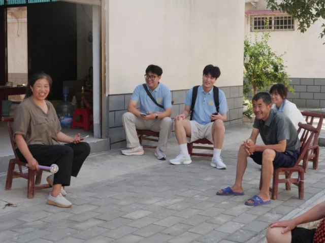 图为实践队员在邹庄与村民交谈,了解搬迁后的生活情况。高原 摄