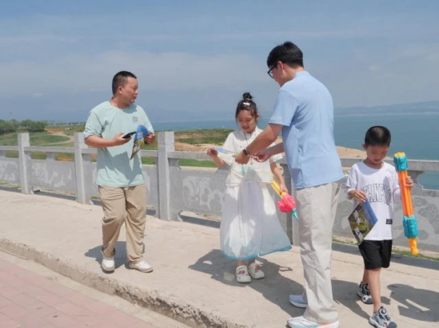 离开邹庄移民新村,实践团队来到宋岗旅游港发放南水北调工程宣传单,以实际行动传播国家战略工程的重要意义。队员们身穿统一队服,向过往游客、渔民及周边居民发放精心设计的宣传单。双页图文并茂,介绍了南水北调工程“东、中、西”三线布局、建设历程、惠及人口,并呼吁大家用实际行动守护南水北调水源。队员们还设计了有关南水北调工程和移民精神的易拉宝,他们结合易拉宝内容,讲述了丹江口库区群众两次搬迁、三代守护水源的感人事迹以及移民精神,吸引了不少游客驻足。