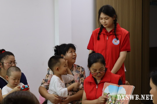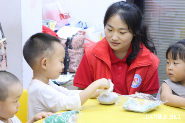 图为团队成员与小朋友亲自绘本活动后的合影留念图为团队成员带领小朋友制作艾草锤