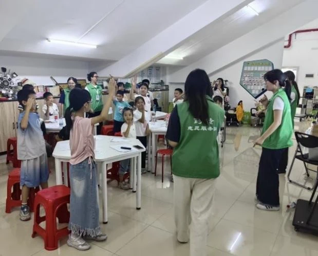 图为义教课堂的同学们积极回应药传志愿服务队队员的提问。通讯员 胡俊鹏 供图
