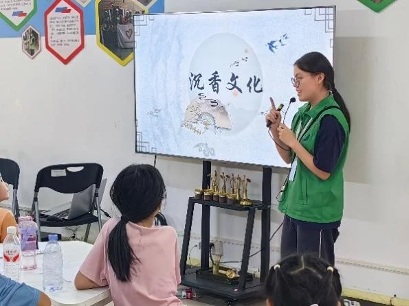 图为药传志愿服务队队员向同学们讲解沉香文化的情景。通讯员 胡俊鹏 供图