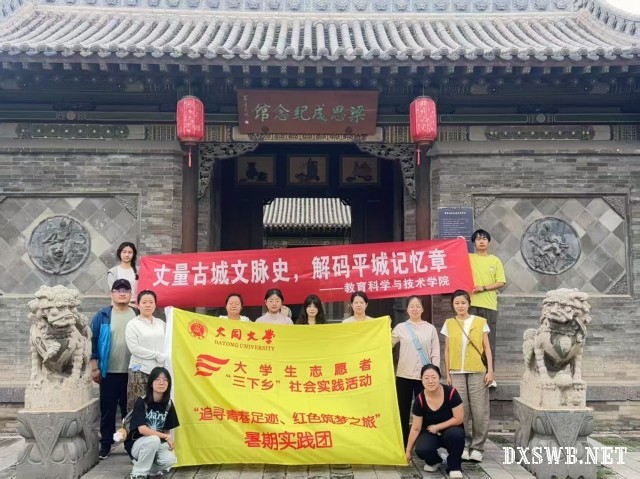 2025年7月5日,山西大同大学教育科学与技术学院的暑期“三下乡”社会实践团队,在刘思瑶和苏飞两位老师的带领下,由10名学生组成的队伍踏上了一场意义非凡的文化探寻之旅。此次活动以“丈量古城文脉史,解码平城记忆章”为主题,团队深入大同古城相关区域,挖掘当地历史文化内涵,弘扬和传承地方优秀传统文化。