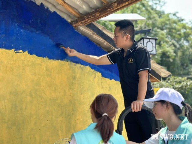 2025年7月8日,邵阳学院药学院、农林生态学院联合组建的“油香药馨”志愿服务团走进邵阳县塘渡口镇真如庵村,开展“彩绘乡村·助力旅游”主题活动。团队以民宿外墙为画布,融合当地油茶文化与生态元素,创作系列主题文化墙,为乡村旅游注入艺术活力。